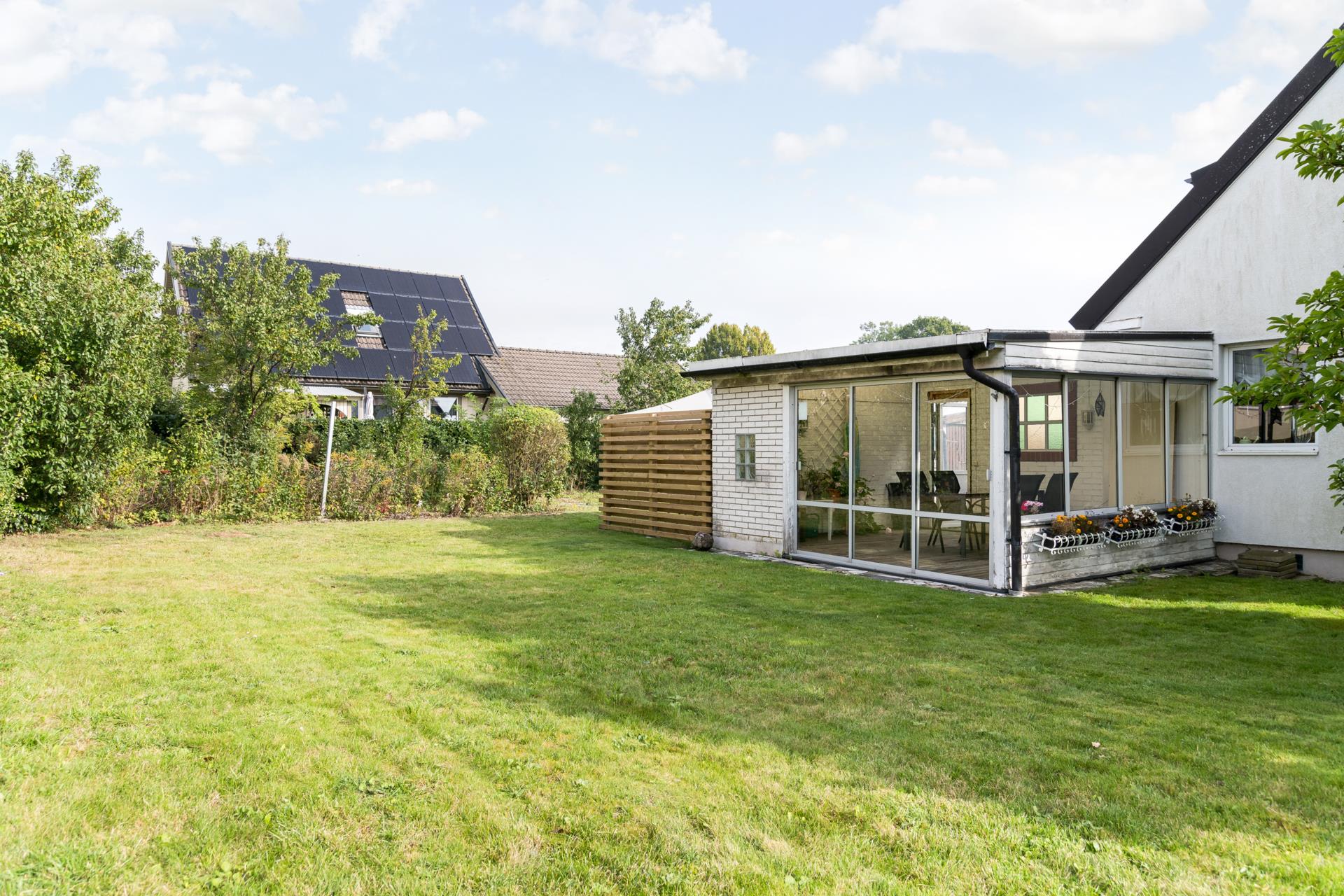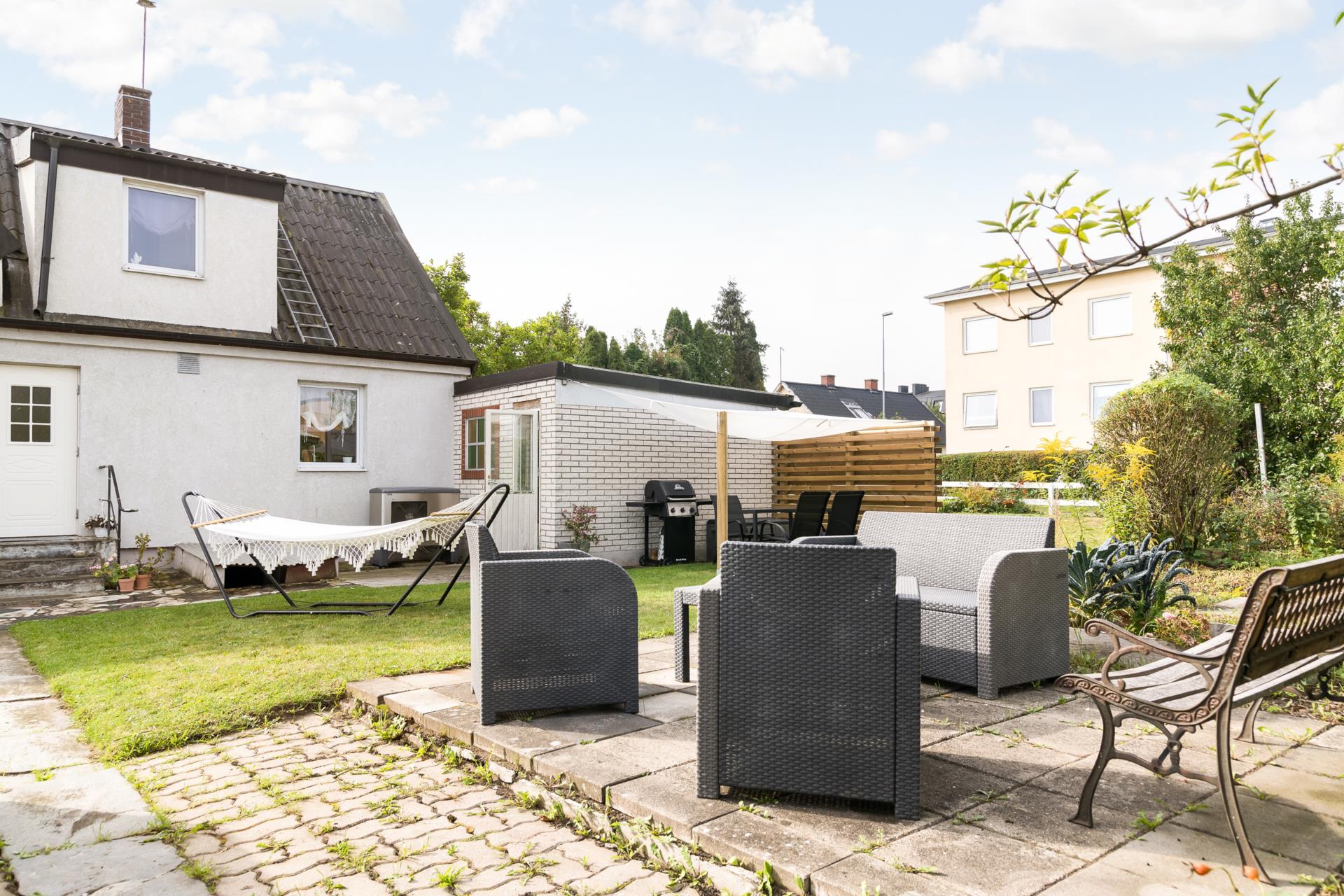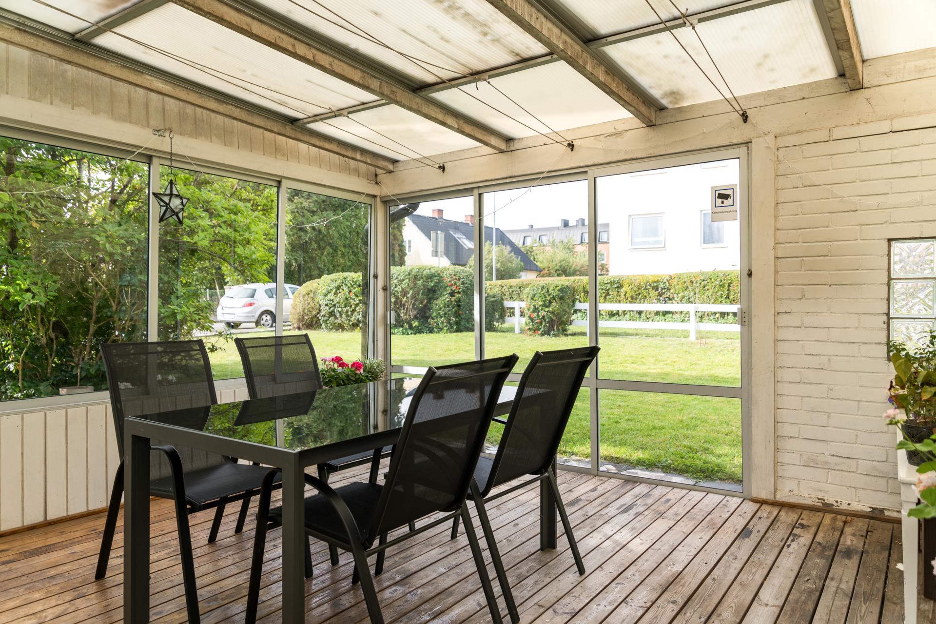 Tillbaka hemma på Infanterivägen 6 kan du njuta av lugna kvällar i det inglasade uterummet med utsikt över den vackra trädgården, som erbjuder både gräsytor och planteringar. Trädgården är belägen i ett soligt läge, och erbjuder en privat och insynsskyddat oas där du kan låta din kreativitet blomstra.
