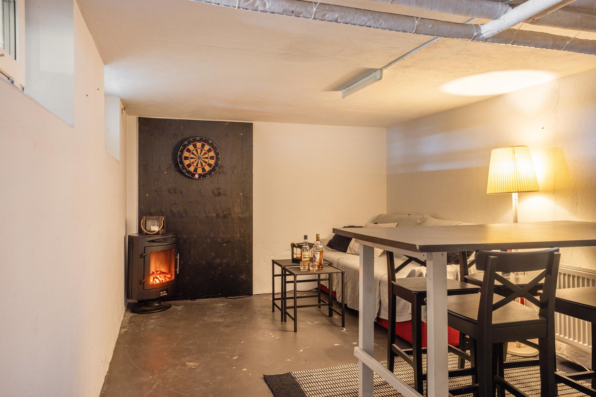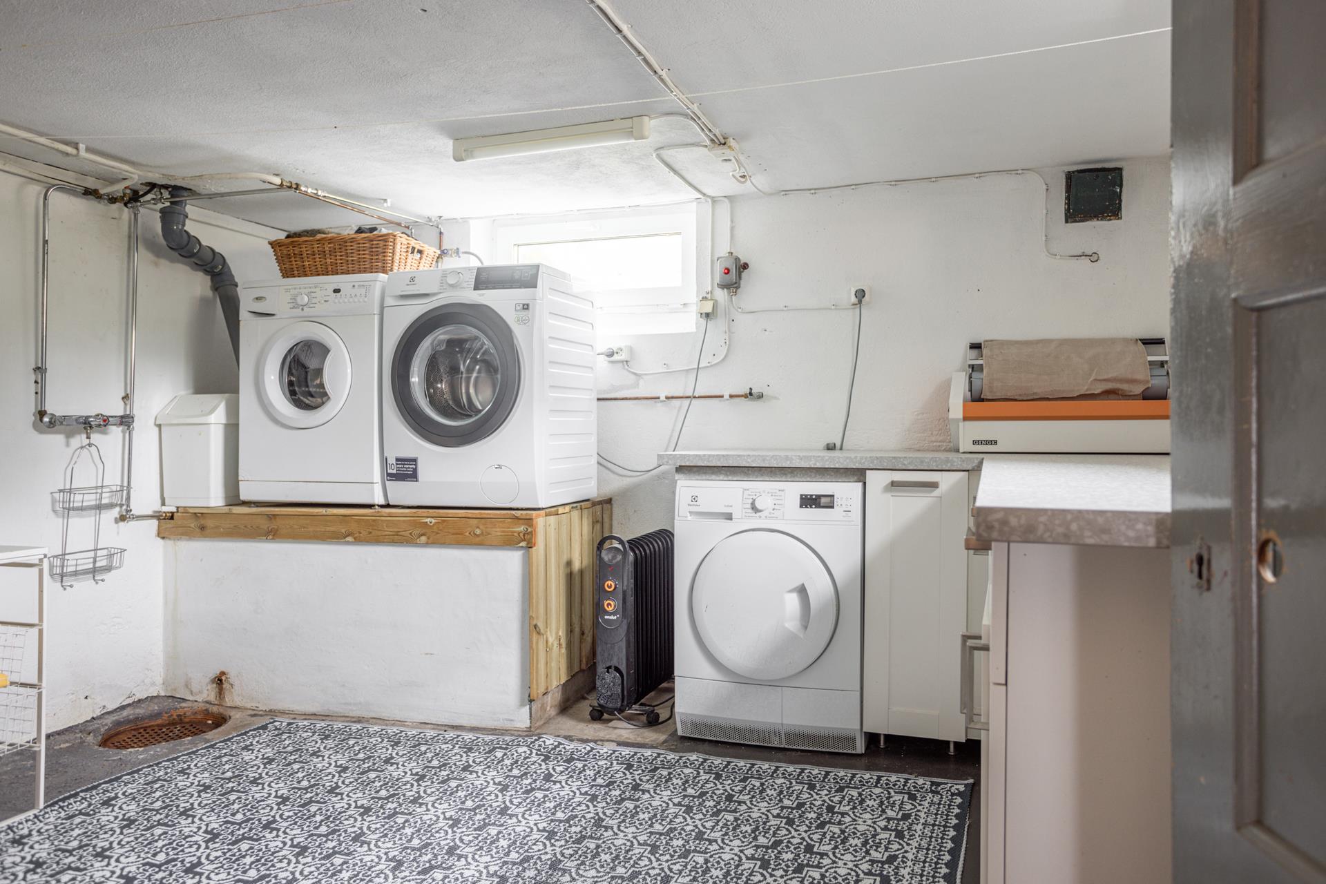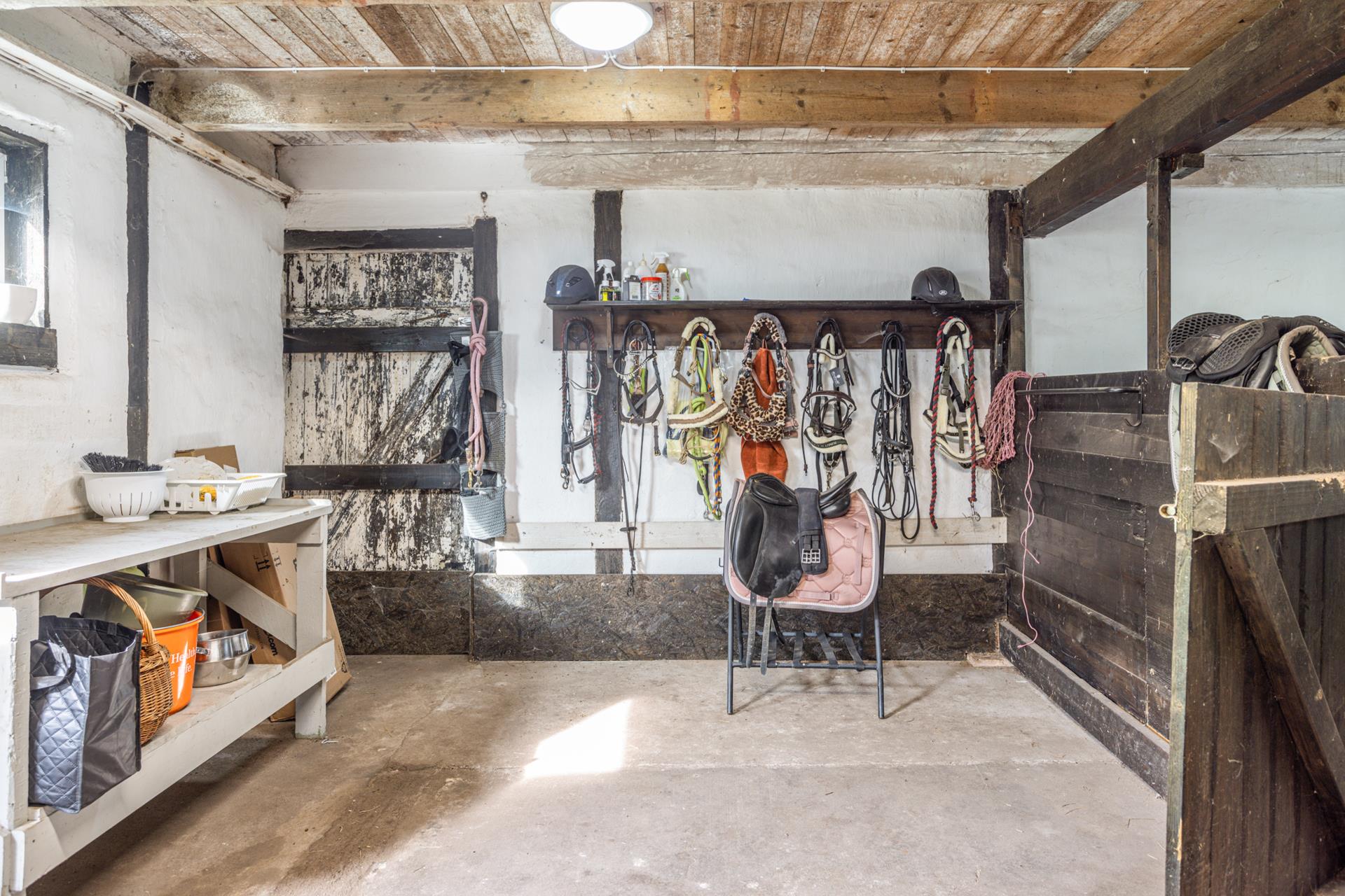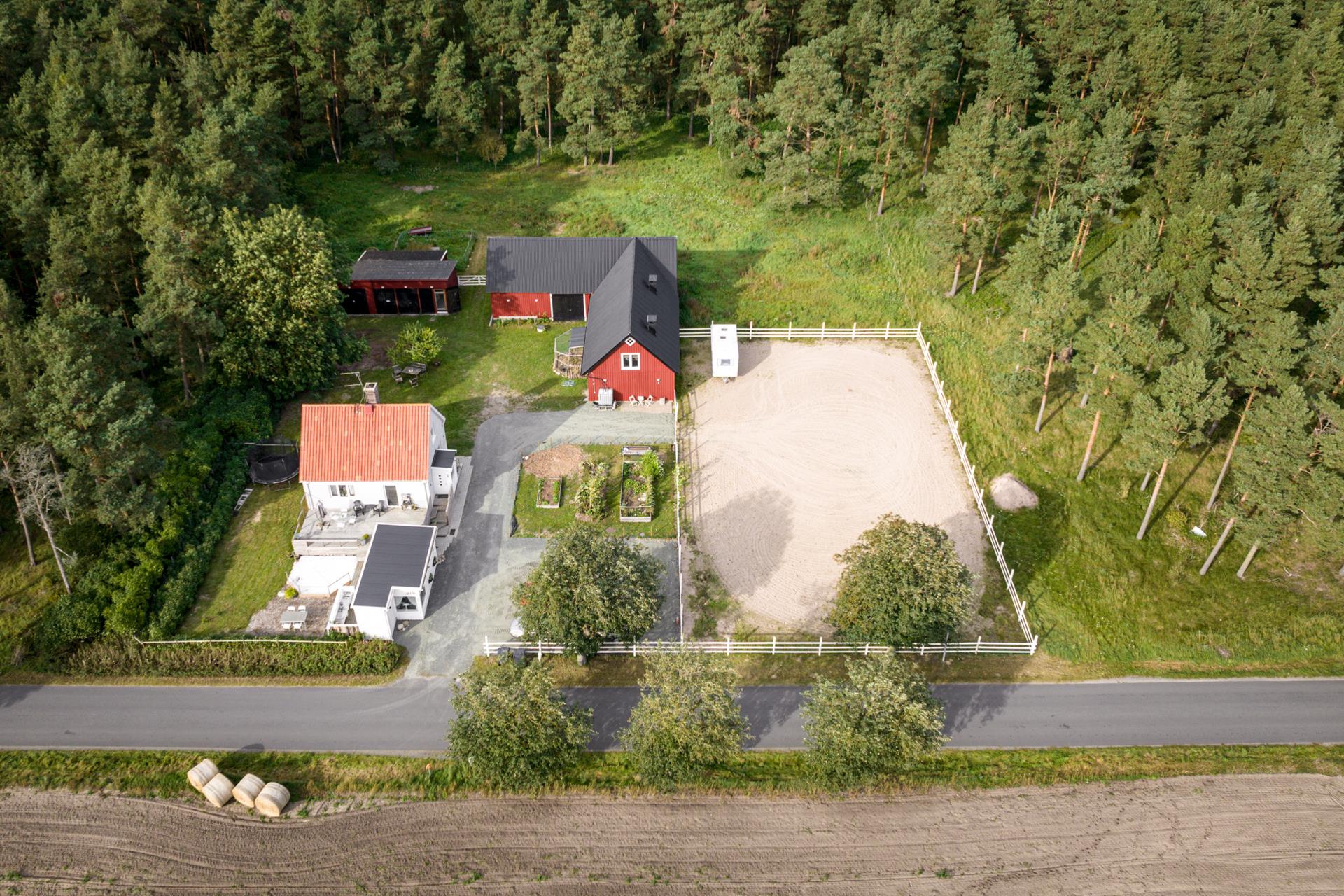 Fastigheten erbjuder även gott om utrymme för dig som vill kombinera boende med intressen eller verksamhet. Här finns ett stort garage/förråd samt en ladugårdslänga i vinkel. En del av ladugården rymmer idag en charmig festlokal, medan övriga ytor kan anpassas efter behov, exempelvis för hobbyverksamhet, ateljé, mindre djurhållning eller förvaring. Ovanför finns en rymlig vind med ytterligare utvecklingsmöjligheter.