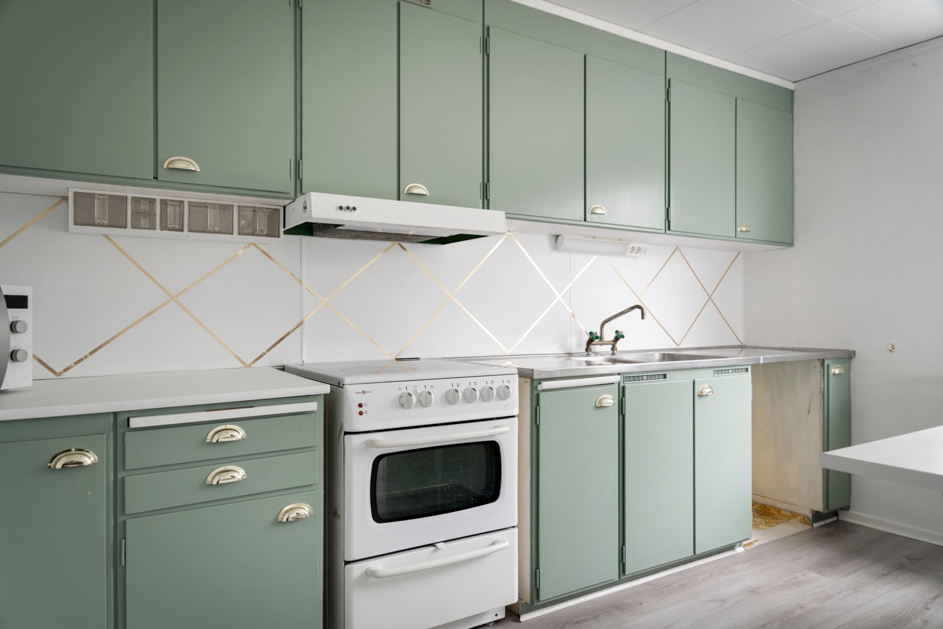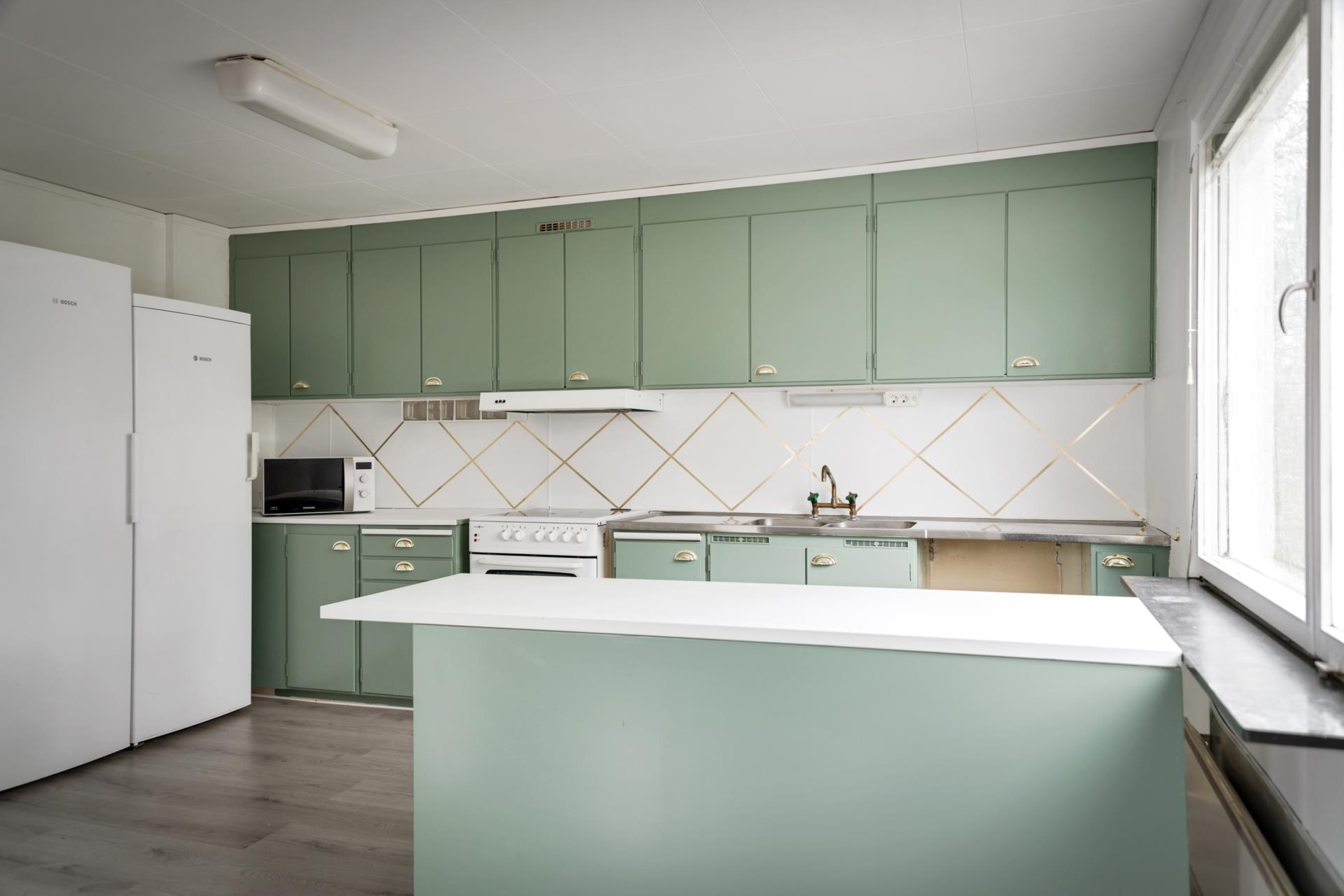 Köksö som delar av mot matplats/vardagsrum.