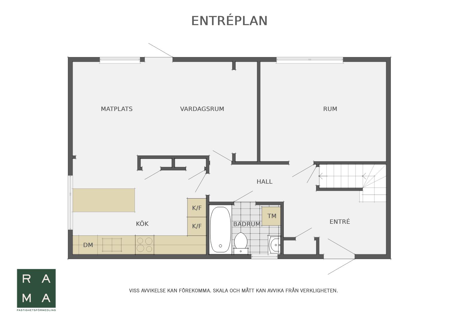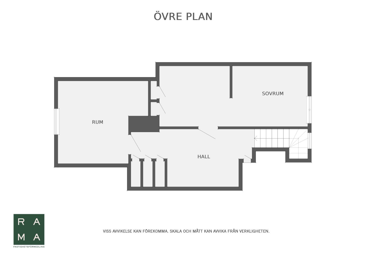 I huset finns tre sovrum varav två av dessa är på ovanvåningen. På entréplan finns sovrum, vardagsrum, kök och badrum.