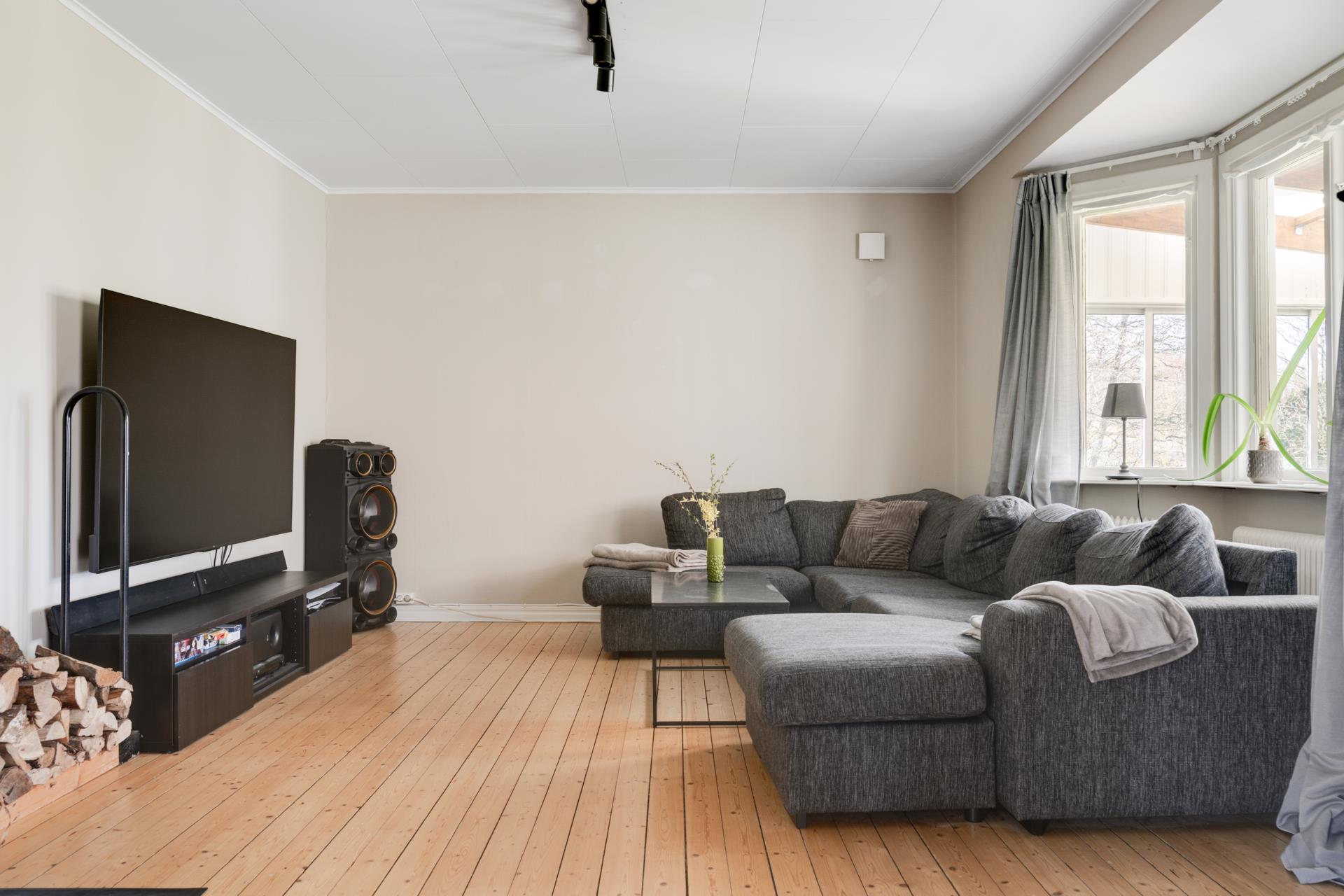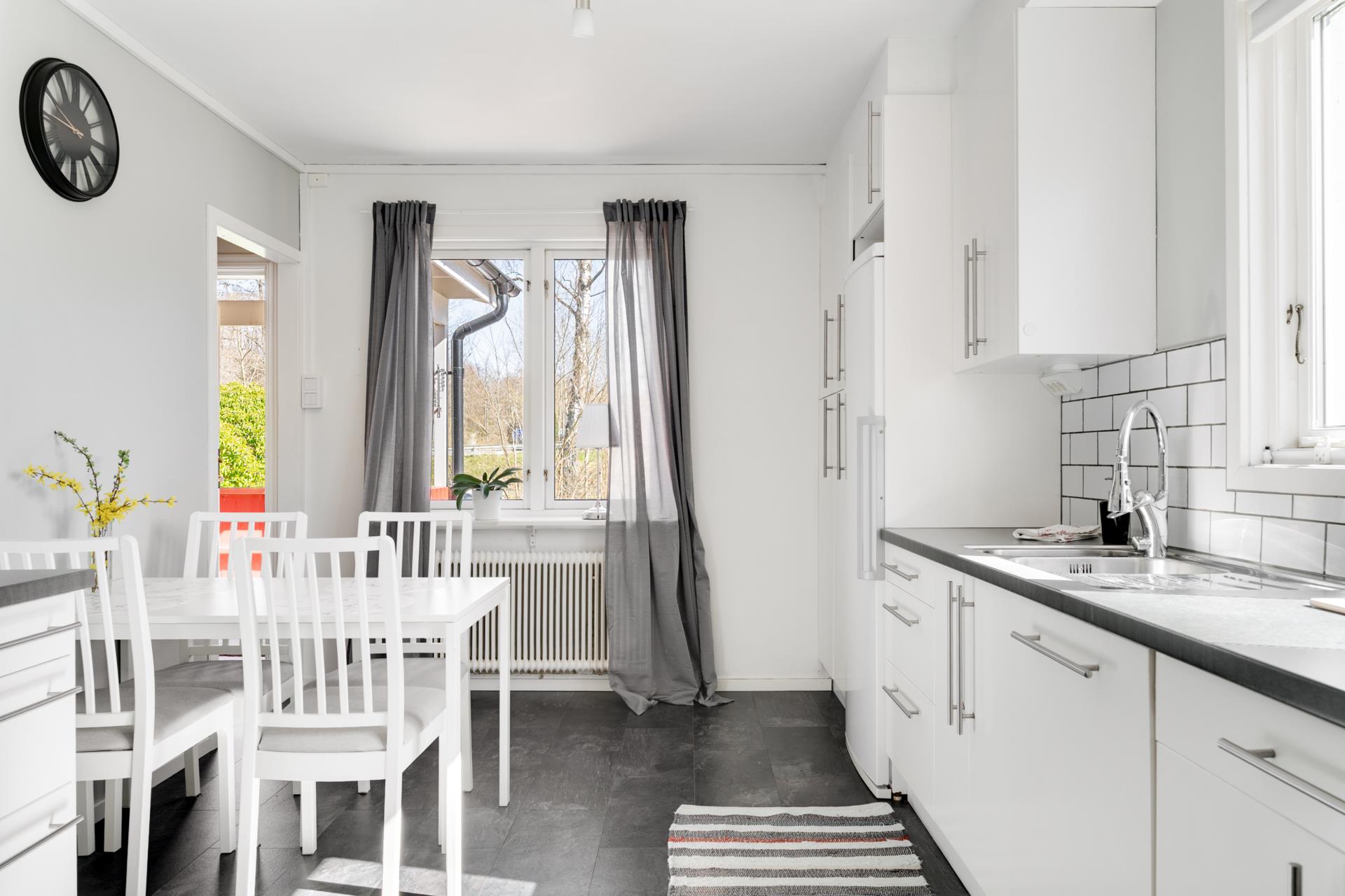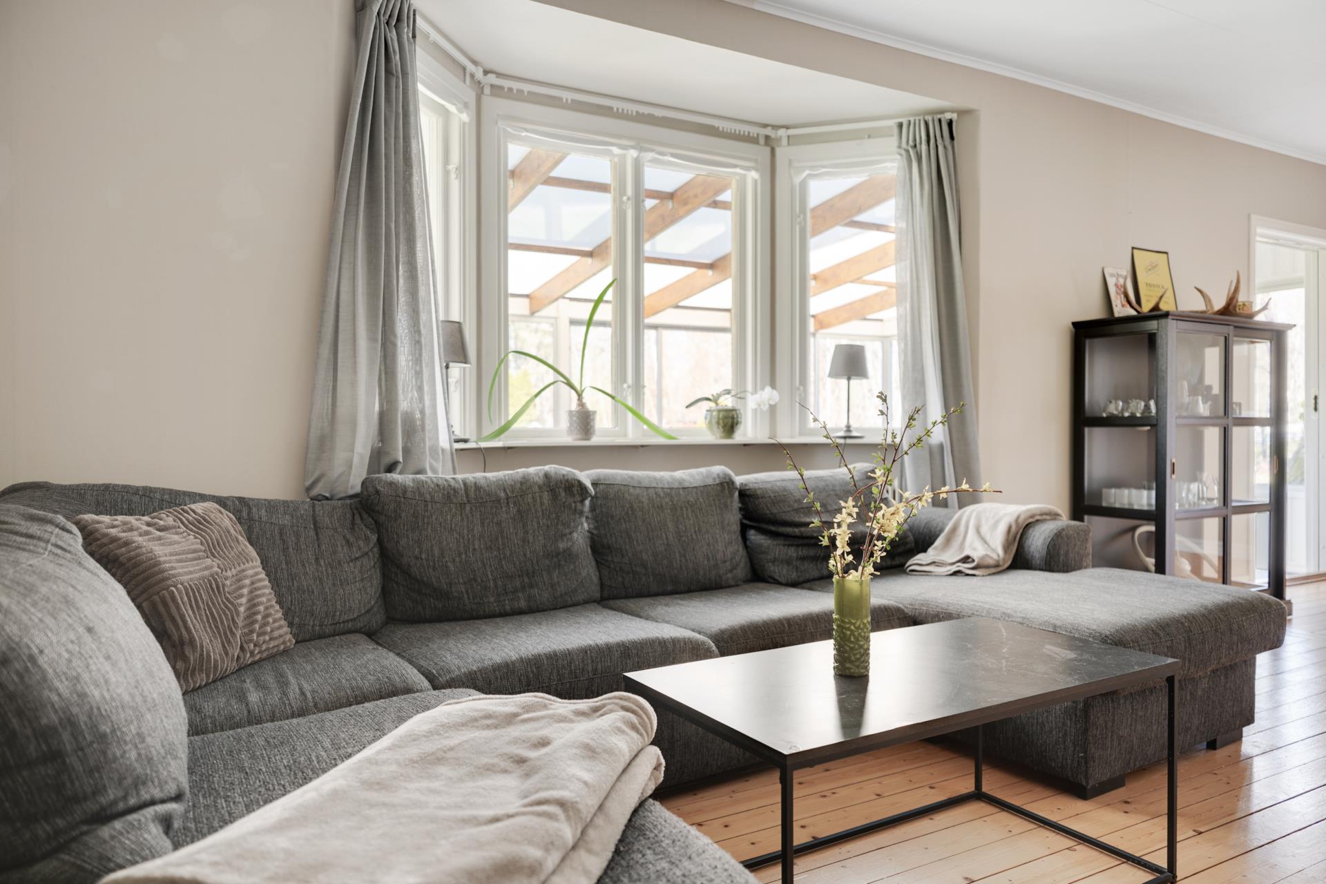 Här erbjuds vi ett trivsamt hem med ljust kök, tre rymliga sovrum, badrum, mindre gästtoalett och ett vardagsrum med mysig kamin – som även öppnar upp till ett underbart uterum och en trivsam trädgård. Som en extra fördel finns ett rymligt dubbelgarage med gott om plats för dina fordon samt goda förvaringsmöjligheter.