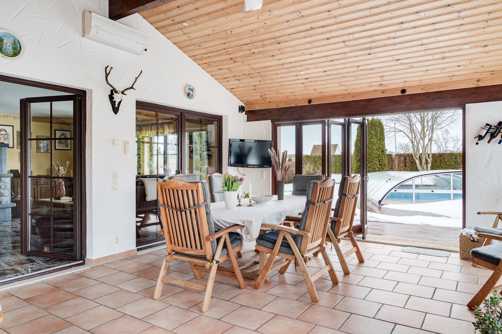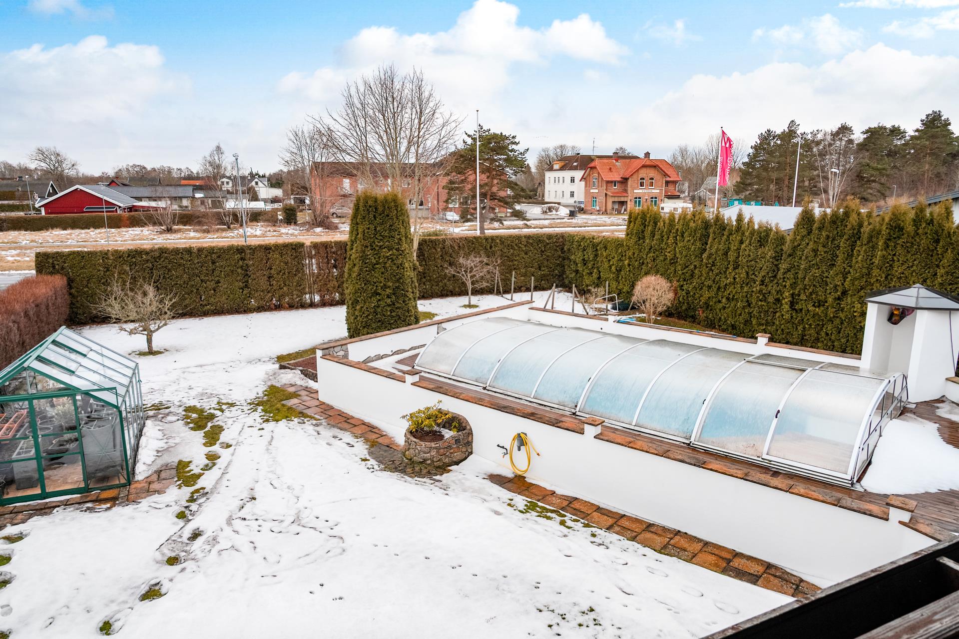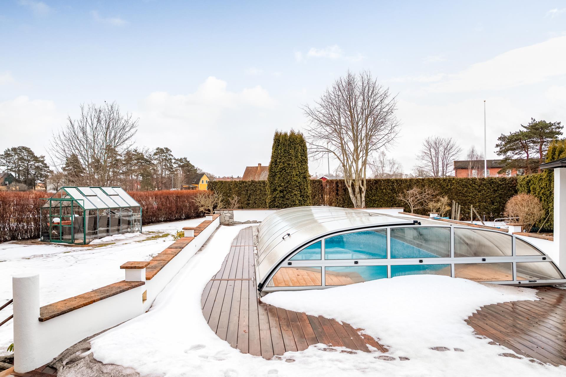 Villan, uppförd 1998, är en mycket välbyggd och solid bostad med lättbetongstomme och betongbjälklag, vilket ger en stabil och långsiktigt hållbar konstruktion. Bostaden omfattar totalt 363 kvm fördelat över entréplan, övre plan och källare med generösa ytor och en genomtänkt planlösning. På plan 1 och 2 finns fyra sovrum samt två badrum och en separat wc. I källaren finns ytterligare ett sovrum samt dusch och toalett, vilket skapar god flexibilitet för den stora familjen, gäster eller egen verksamhet hemifrån. Huset präglas av exklusiva och tidlösa materialval som håller sig väl över tid och ger en gedigen känsla rakt igenom. De sociala ytorna är rymliga och inbjudande med gott om plats för både vardagsliv och umgänge. I trädgården finns en ordentlig pool med pooltak som förlänger badsäsongen samt en jacuzzi som skapar en privat och avkopplande miljö året runt.