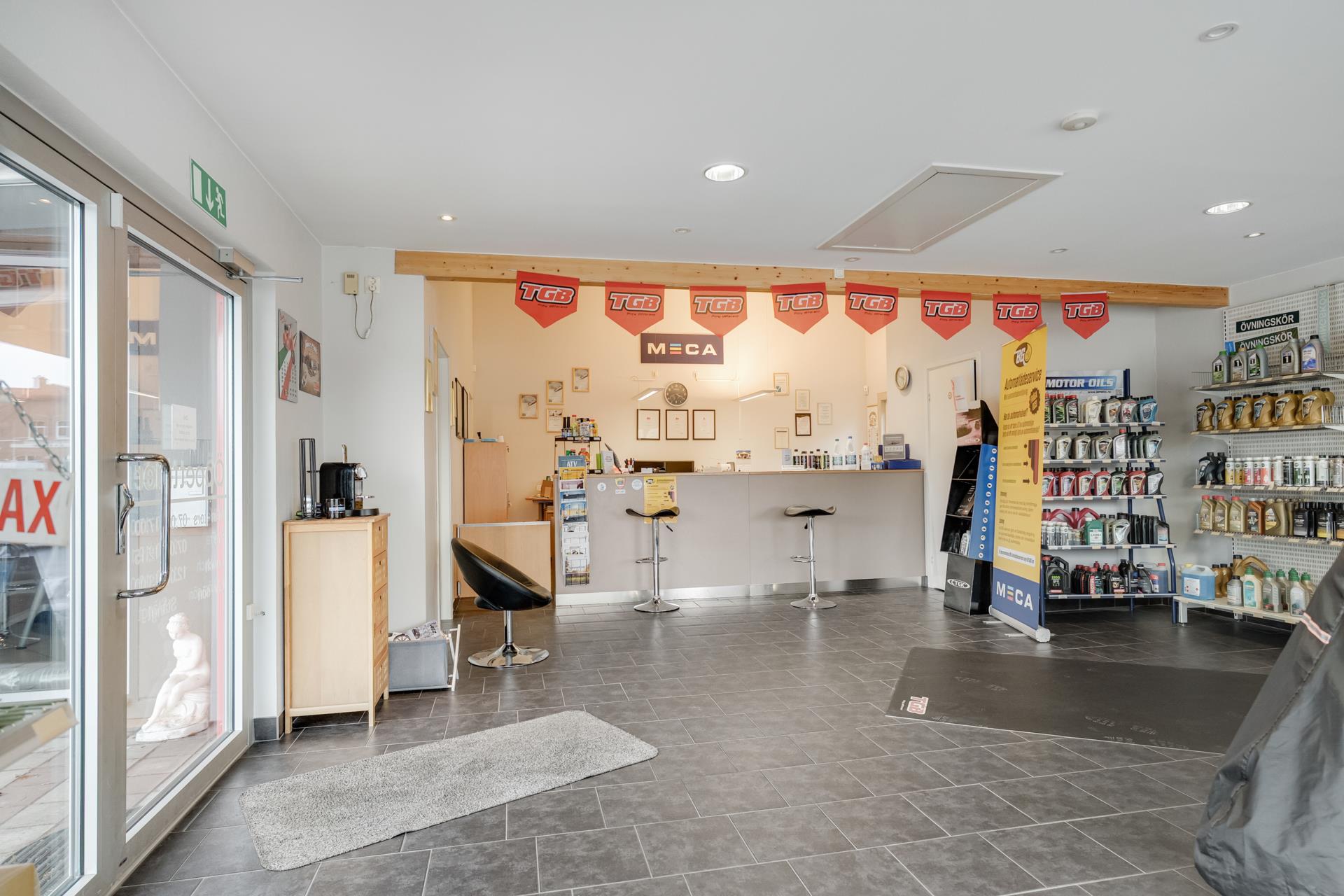 På fastigheten finns även en stor och rejält uppförd verkstadsbyggnad med gott rykte i byn. Lokalerna är anpassade för professionell verksamhet och erbjuder generösa ytor samt flera olika takhöjder som ger god funktionalitet i det dagliga arbetet. Här finns möjlighet att fortsätta driva bilverkstad i befintlig anda eller att anpassa lokalerna till annan typ av verksamhet såsom lager, entreprenad eller produktion. Verkstaden säljs utan inventarier vilket ger nästa ägare full frihet att forma lokalerna efter egna behov och verksamhetsinriktning.