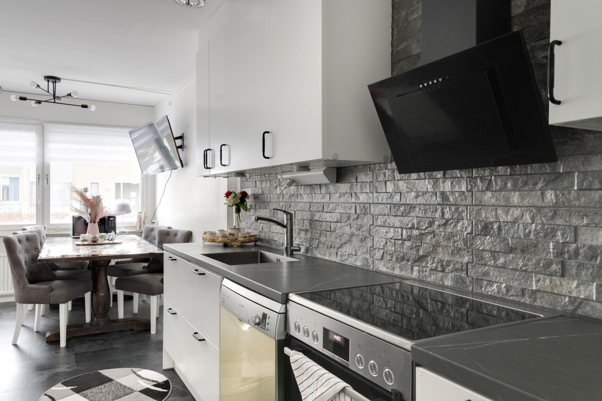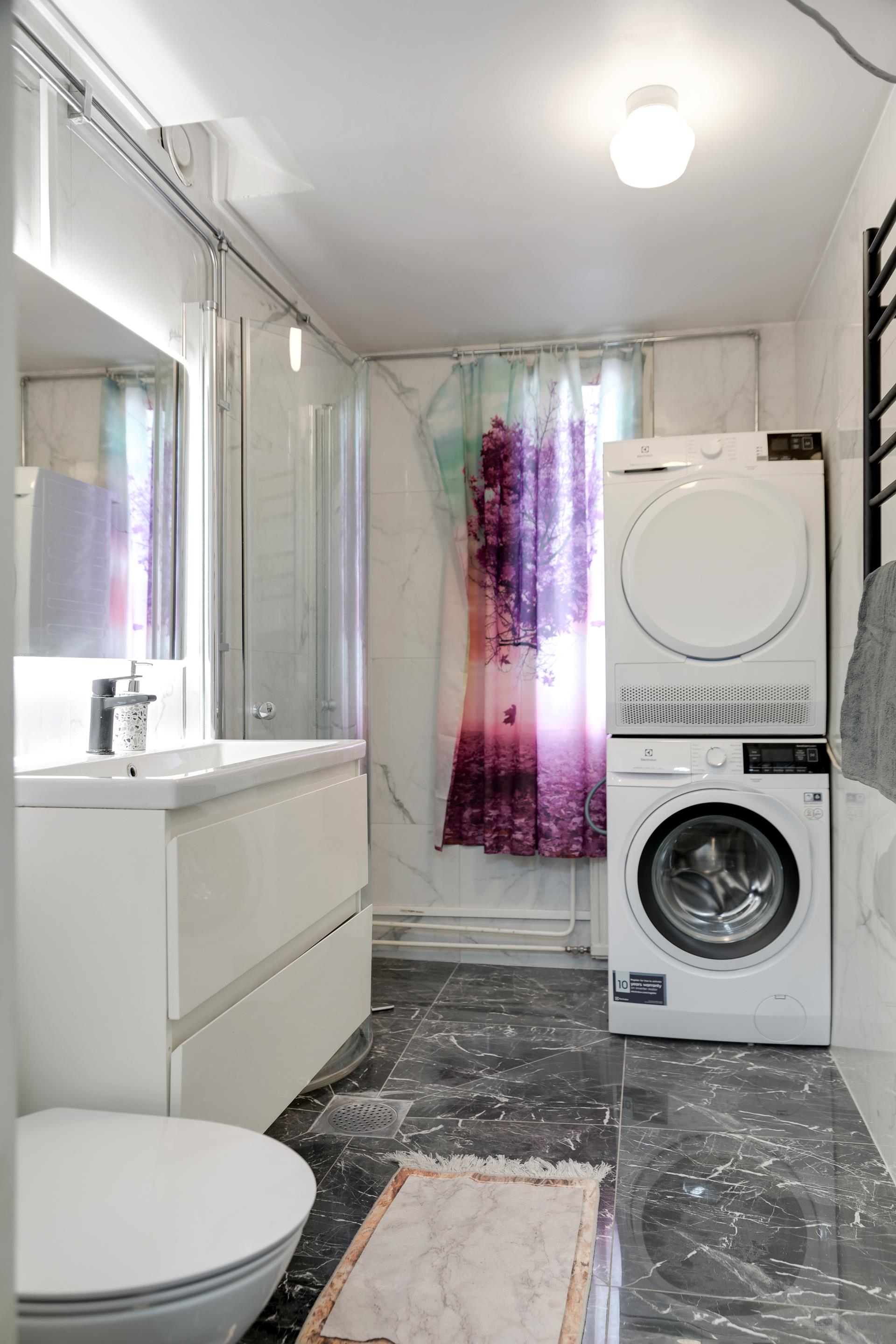 Nytt smakfullt kök, nya ytskikt och nytt helkaklat badrum med både tvättmaskin och torktumlare är bara några av fördelarna med lägenheten.